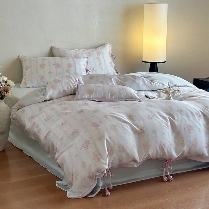 Bianca Floral Ribbon Tied TENCEL™ Bedding Set / Ivory Blue