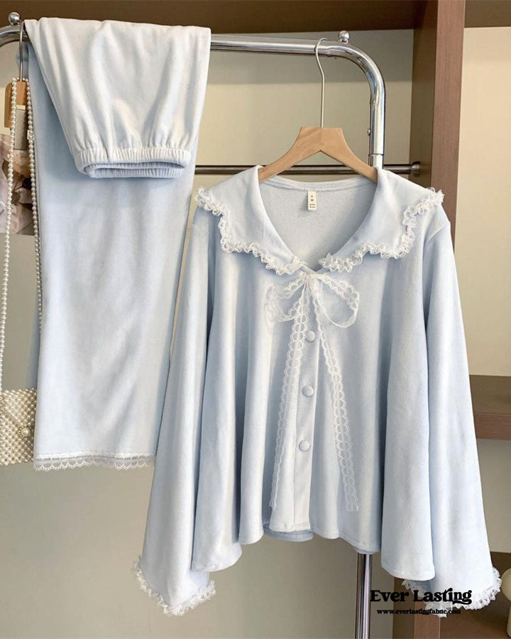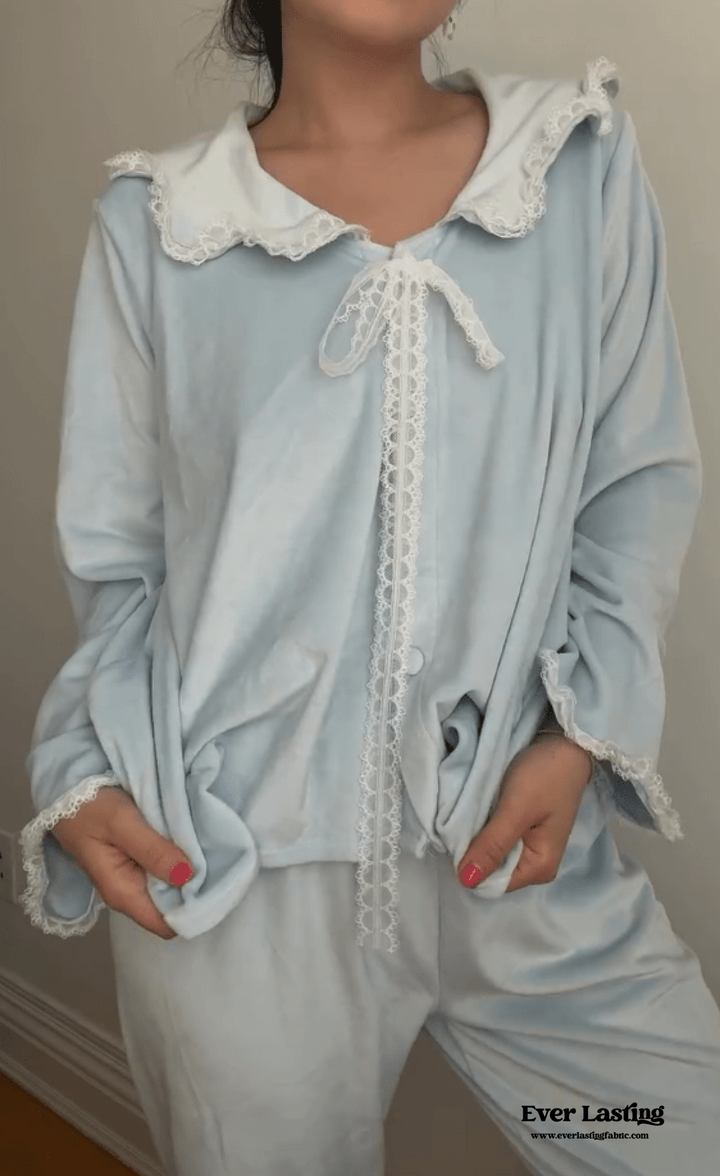 Velvet Coquette Lace Pajama Set / Blue (Final Sale)