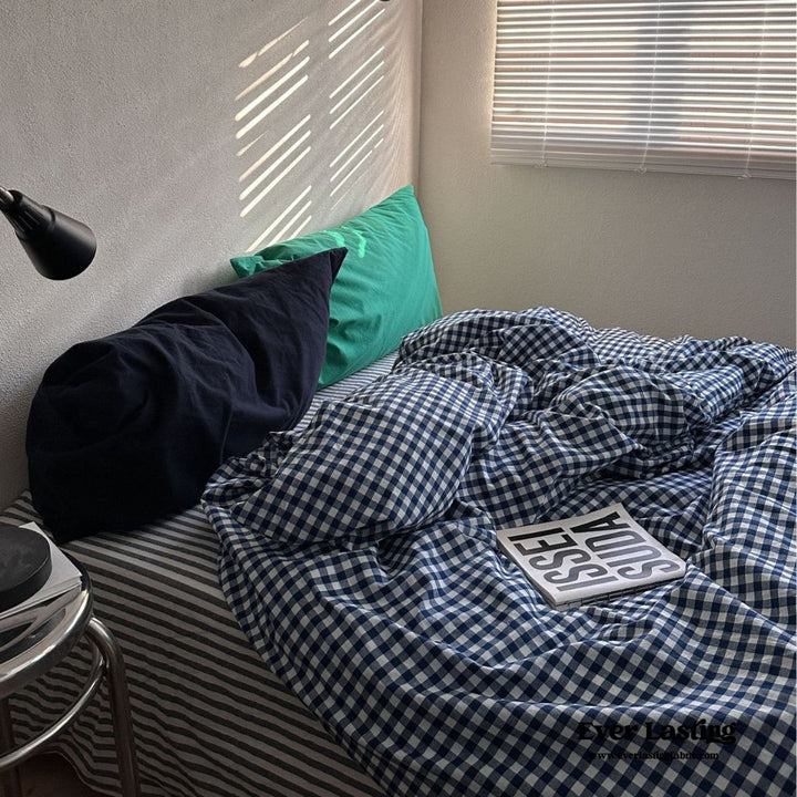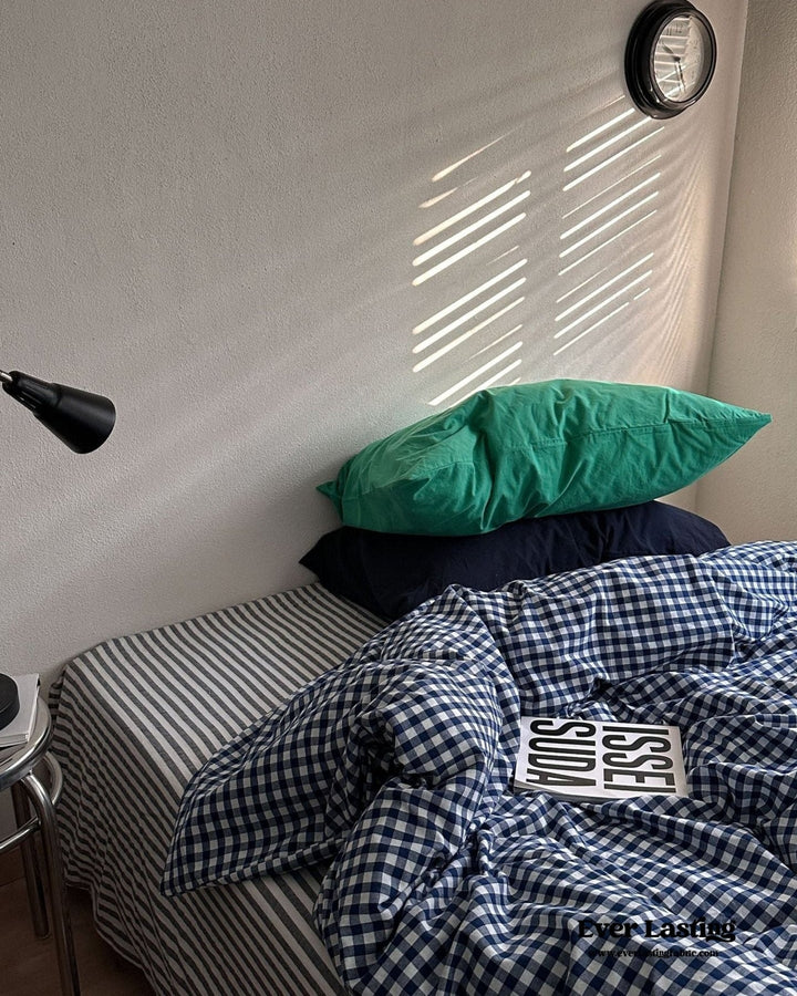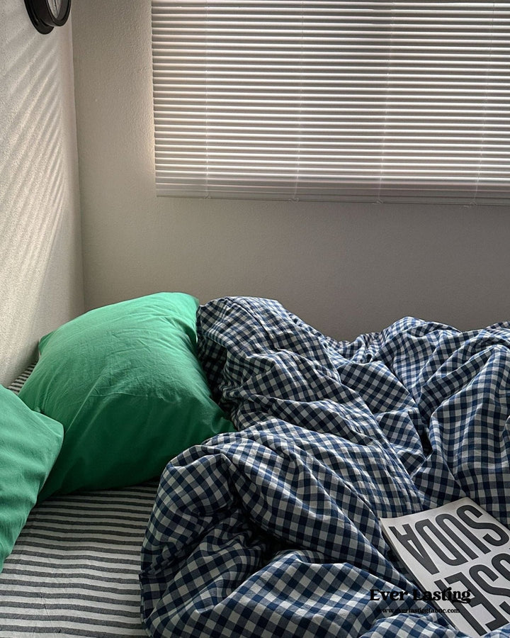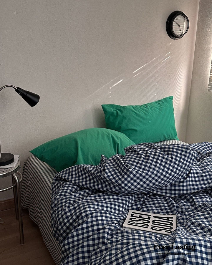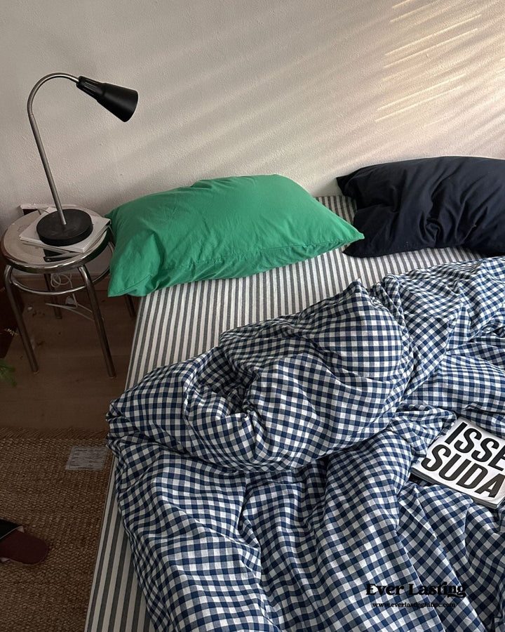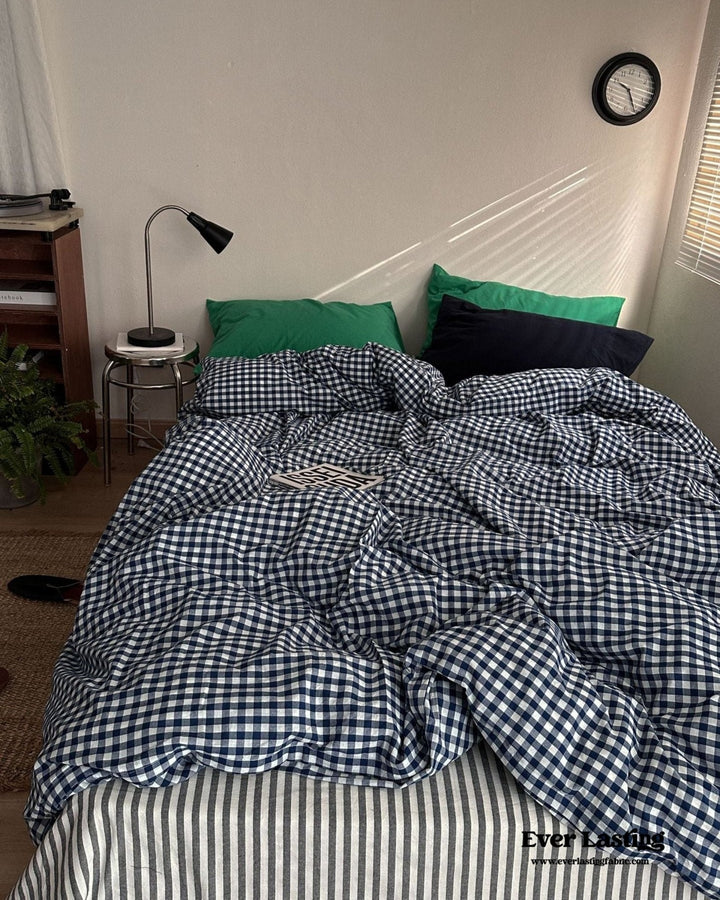 Vintage Deep Blue Gingham Bedding Set is now offered in a bundle, and all bundle sets come with a pre-included 10% to 20% discount! Enjoy savings on a complete set, including a duvet insert and pillow(s), along with our classic duvet cover, bed sheet, and pillowcase(s).