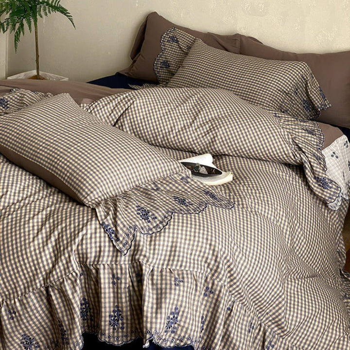Willa Retro Double Gauze Gingham Bedding Set is now offered in a bundle, and all bundle sets come with a pre-included 10% to 20% discount! Enjoy savings on a complete set, including a duvet insert and pillow(s), along with our classic duvet cover, bed sheet, and pillowcase(s).